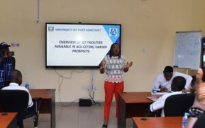 On Wednesday, November 22, 2023, ACE-CEFOR hosted students of the Government Comprehensive Secondary School, Borokiri, who were on excursion to the Centre. The students were received by the Communication Officer of the Centre, Mrs. Benedicta Omeni, who took them on a tour of the Centre, after a brief overview of the Centre’s activities.
